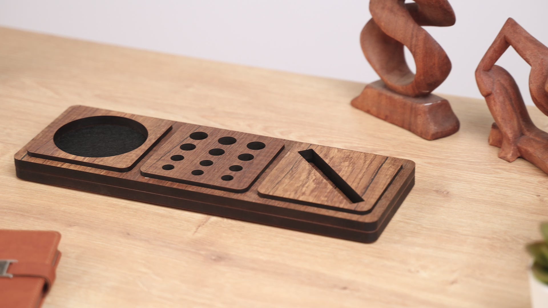Schreibtisch-Organizer aus Holz mit drei quadratischen