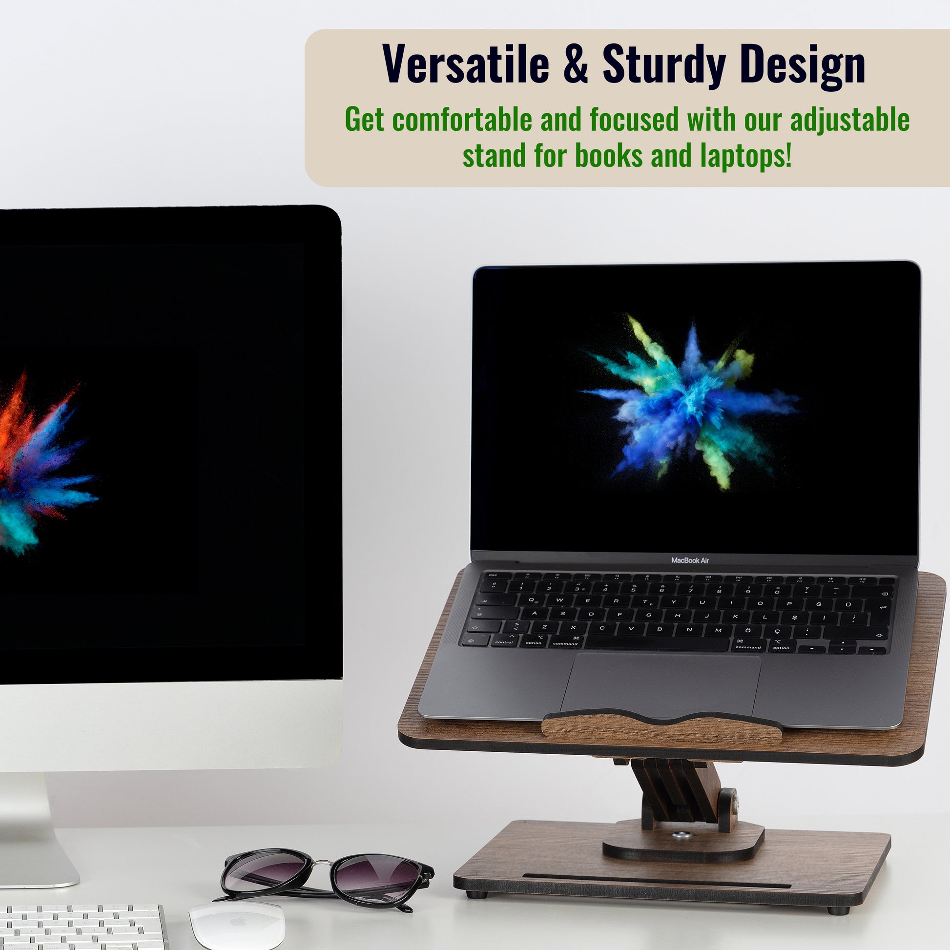 • ❇️Stylish and Practical: Our Book Stand is not only practical but also stylish, making it a great addition to any kitchen or workspace. The wooden stand adds a touch of elegance to your decor, while the adjustable height and angle make it a functional and practical accessory for any book lover or cooking enthusiast. The laptop riser is perfect for anyone who needs a comfortable and adjustable viewing angle while working on their computer.