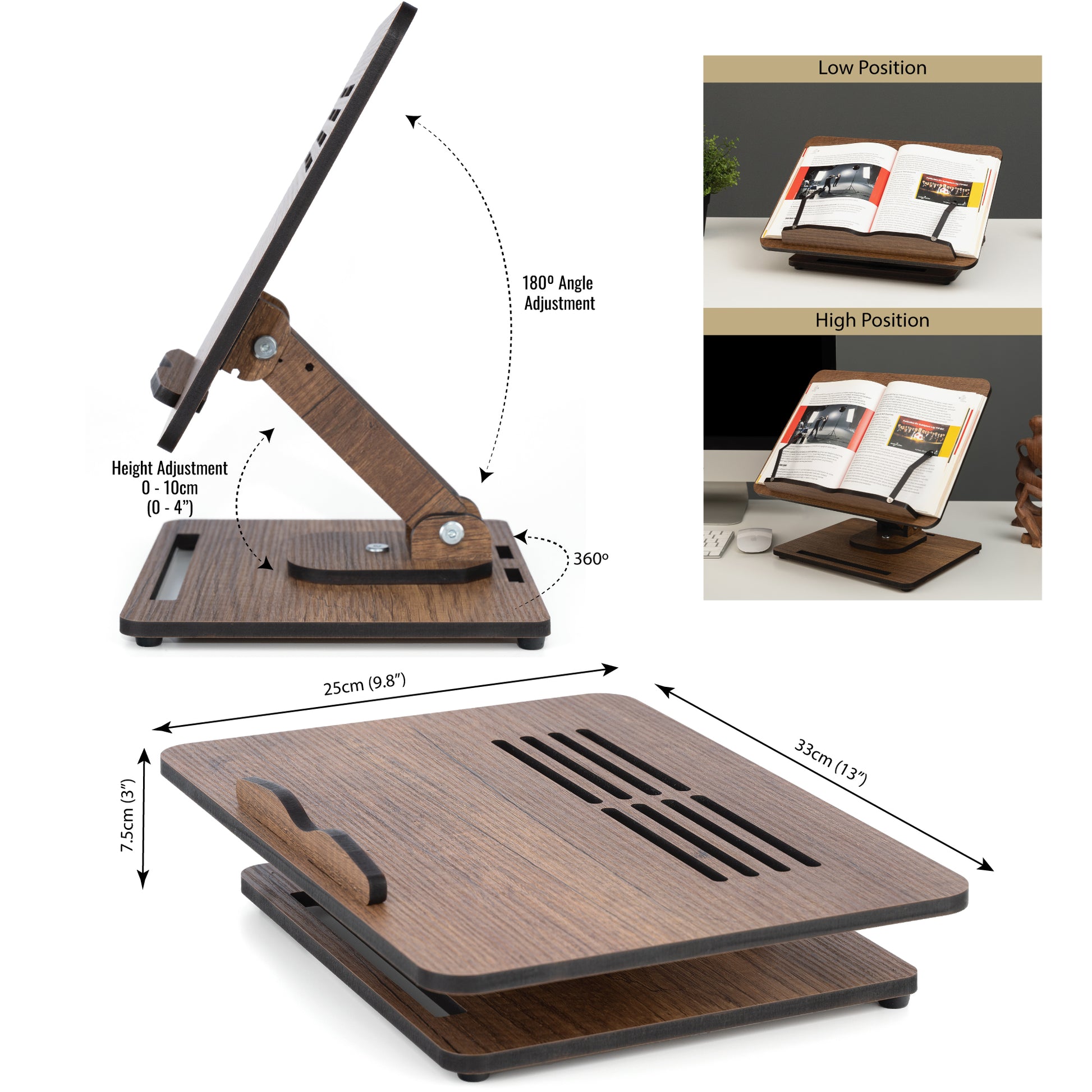 • ❇️Versatile and Convenient: Our Book Stand is the perfect addition to your collection of kitchen accessories and desk gadgets. It serves as a cookbook stand, recipe book holder, music score holder, or even as a wooden laptop stand. The adjustable height and angle make it perfect for use in the kitchen, on your desk, or even while reading in bed.